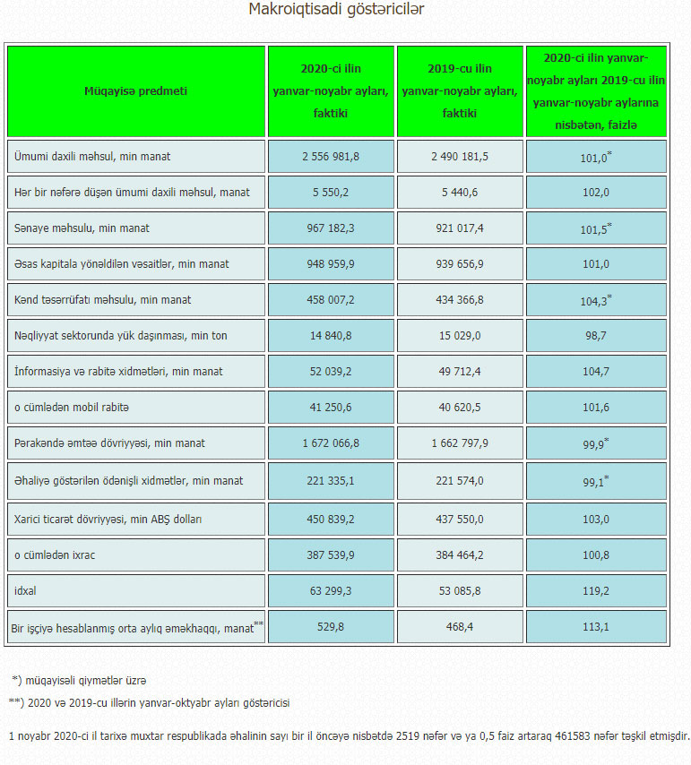Bu ilin yanvar-noyabr aylarında Naxçıvan Muxtar Respublikasında ÜDM-in həcmi əvvəlki ilin eyni dövrünə nisbətən 1% artaraq 2 milyard 556 milyon 981,8 min manat təşkil edib.