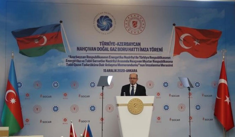 Azərbaycan Türkiyə ilə Naxçıvana təbii qazın tədarükünə dair Anlaşma Memorandumu imzalayıbDekabrın 15-də Ankarada Azərbaycan Respublikasının Energetika Nazirliyi ilə Türkiyə Respublikasının Energetika və Təbii Sərvətlər Nazirliyi arasında Naxçıvan Muxtar Respublikasına təbii qazın tədarükünə dair Anlaşma Memorandumu imzalanıb. Sənədi Azərbaycan tərəfindən energetika naziri Pərviz Şahbazov, Türkiyə tərəfdən isə energetika və təbii sərvətlər naziri Fatih Dönməz imzalayıb.