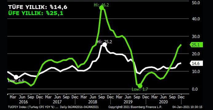 Ötən il Türkiyədə 14,6% inflyasiya qeydə alınıb.Türkiyə Statistika Komitəsi istehlakçı və istehsalçı qiymətləri indekslərini açıqlayıb.