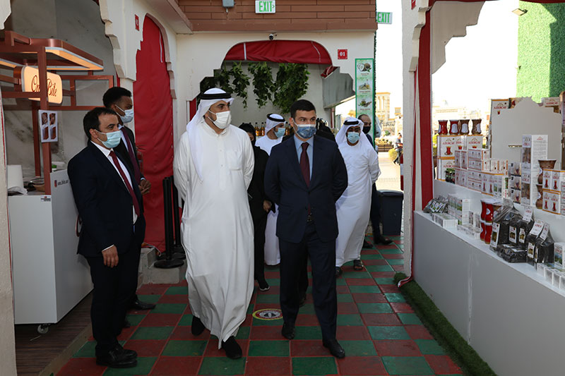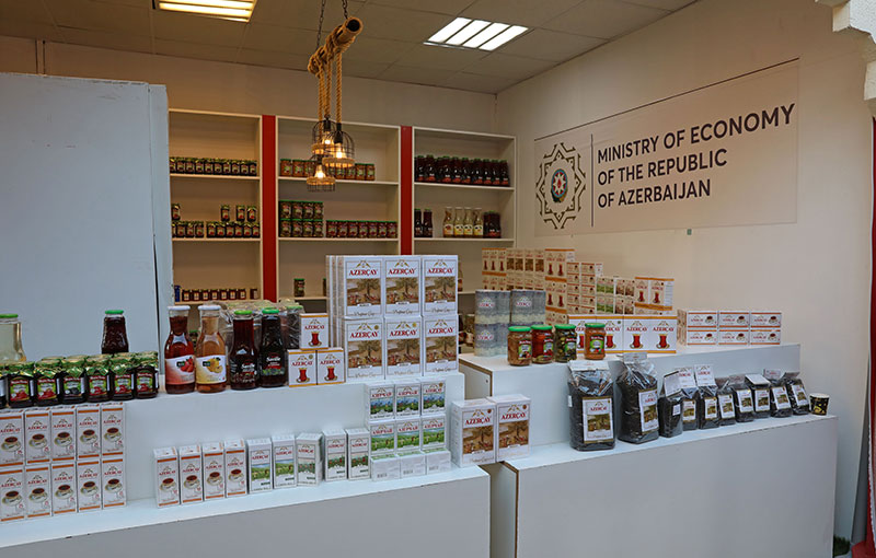 KOBİA və Dubay şəhərindəki Azərbaycan Ticarət Evinin təşkilatçılığı, ölkəmizin Birləşmiş Ərəb Əmirliklərindəki Ticarət Nümayəndəliyinin dəstəyi ilə “Azərbaycan” pavilyonunda bir sıra yerli şirkətlərin məhsulları – meyvə-tərəvəz, meyvə şirələri, kompotlar, bal, çay, mürəbbə, şirniyyat, konservləşdirilmiş məhsullar, xalçalar, kəlağayı, milli suvenirlər və s. “Made in Azerbaijan” brendi ilə nümayiş olunur.