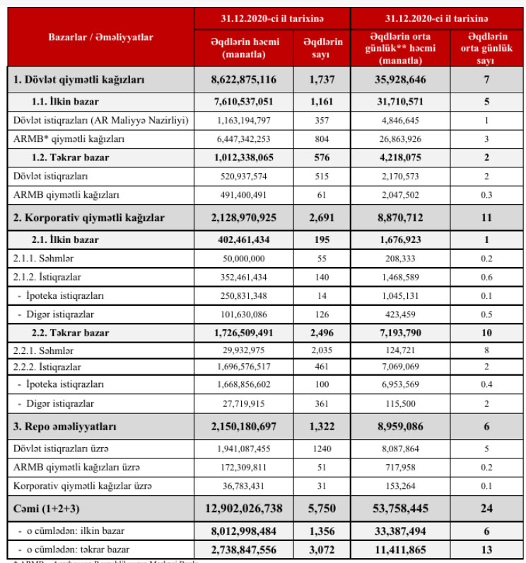 Marja Bakı Fond Birjasına istinadən xəbər verir ki, bu, 2019-cu illə müqayisədə 504 milyon 186 min manat və ya 76,5% çoxdur (indiyədək qeydə alınmış ən böyük artım). Belə ki, Maliyyə Nazirliyi dövlət istiqrazlarının yerləşdirilməsi yolu ilə 2018-ci ildə 872 milyon 758 min manat, 2019-cu ildə isə 659 milyon 8 min manat cəlb etmişdi.