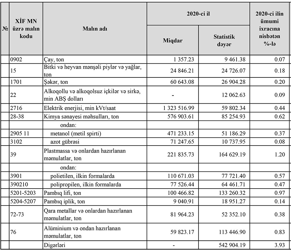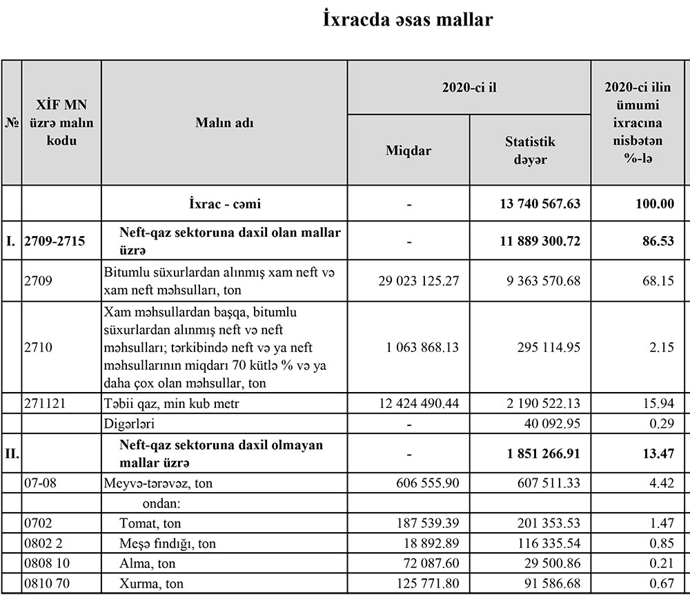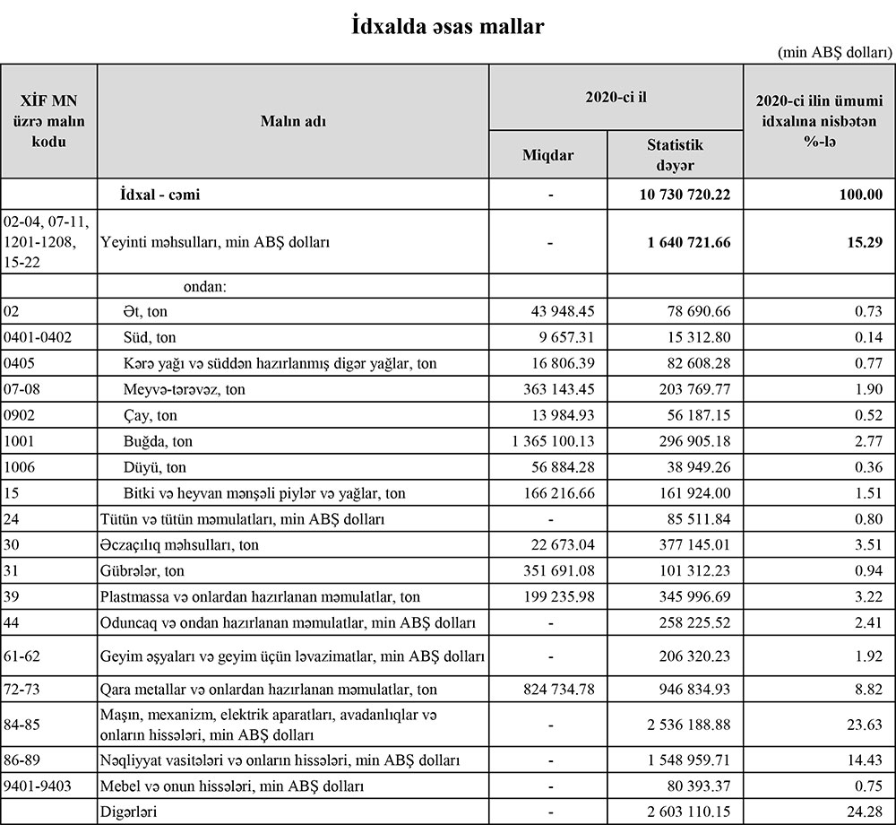 2020-ci ildə Azərbaycanın ən çox idxal və ixrac etdiyi mallar.