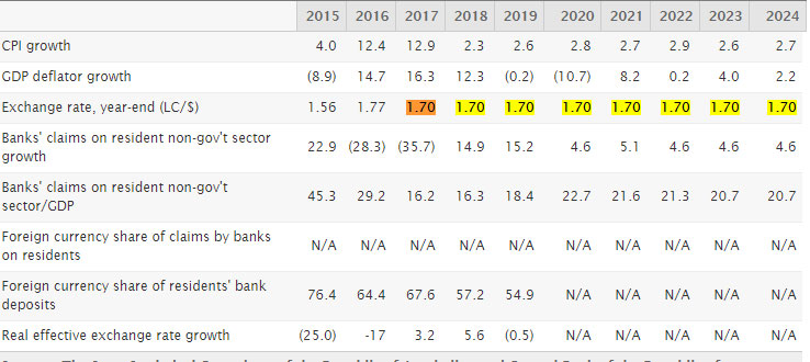 Agentlik 2020-ci ilin Oktyabr ayında Azərbaycanın reytinqini Dağlıq Qarabağla bağlı hərbi münaqişədən yaranan risklər ilə əlaqədar olaraq nəzərdən keçirərkən də Dolların qiymətini 1.70 manat səviyyəsində proqnozlaşdırmışdı.