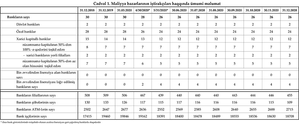 31 dekabr 2020-ci il tarixinə olan bank sektorunun əsas göstəriciləri açılqanıb.