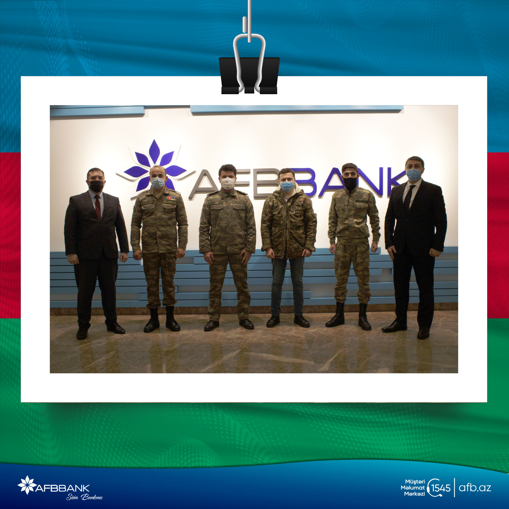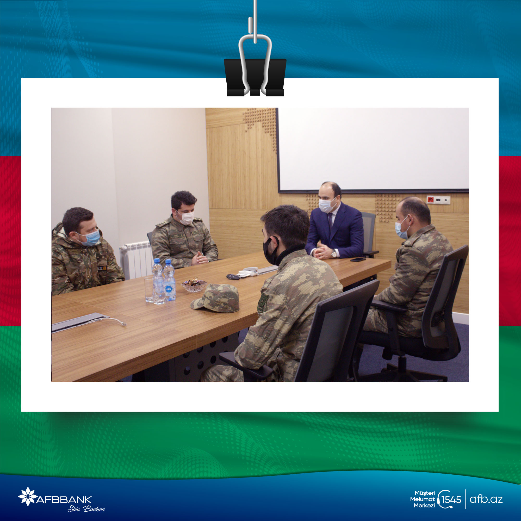 “AFB Bank” ASC-nin İdarə Heyətinin Sədri Orxan Xubanlı “Qarabağ Azərbaycandır!” şüarı altında Ali Baş Komandan Cənab İlham Əliyevin rəhbərliyi ilə “Vətən müharibəsi”ndə iştirak etmiş AFB Bank ASC-nin əməkdaşları Fərman Süleymanlı, Nadir Babayev, Osman Bədəlov və Elmar Rəhimlini qəbul etdi.