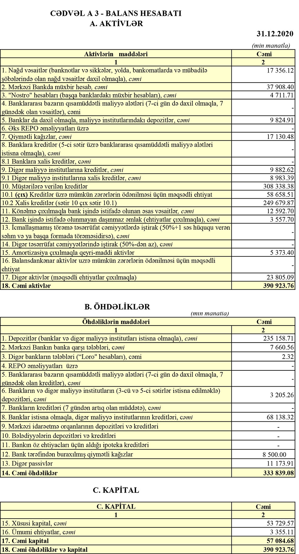 2019-cu illə müqayisədə 2020-ci ildə Yelo Bankın xalis kreditlər portfeli 7 milyon 154 min manat azalaraq 249 milyon 679 min manata düşüb.