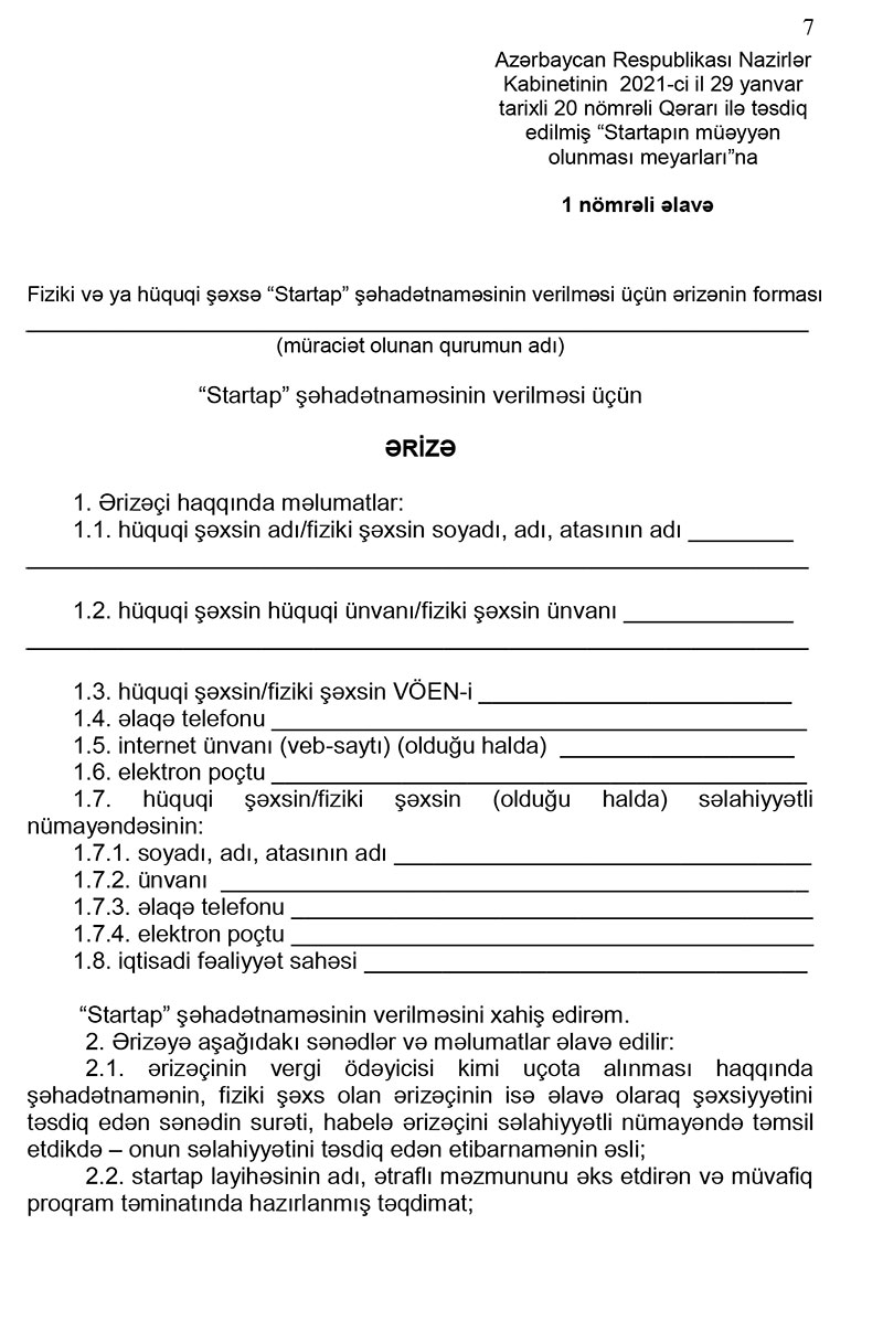Startapın müəyyən olunması meyarları təsdiq edildi