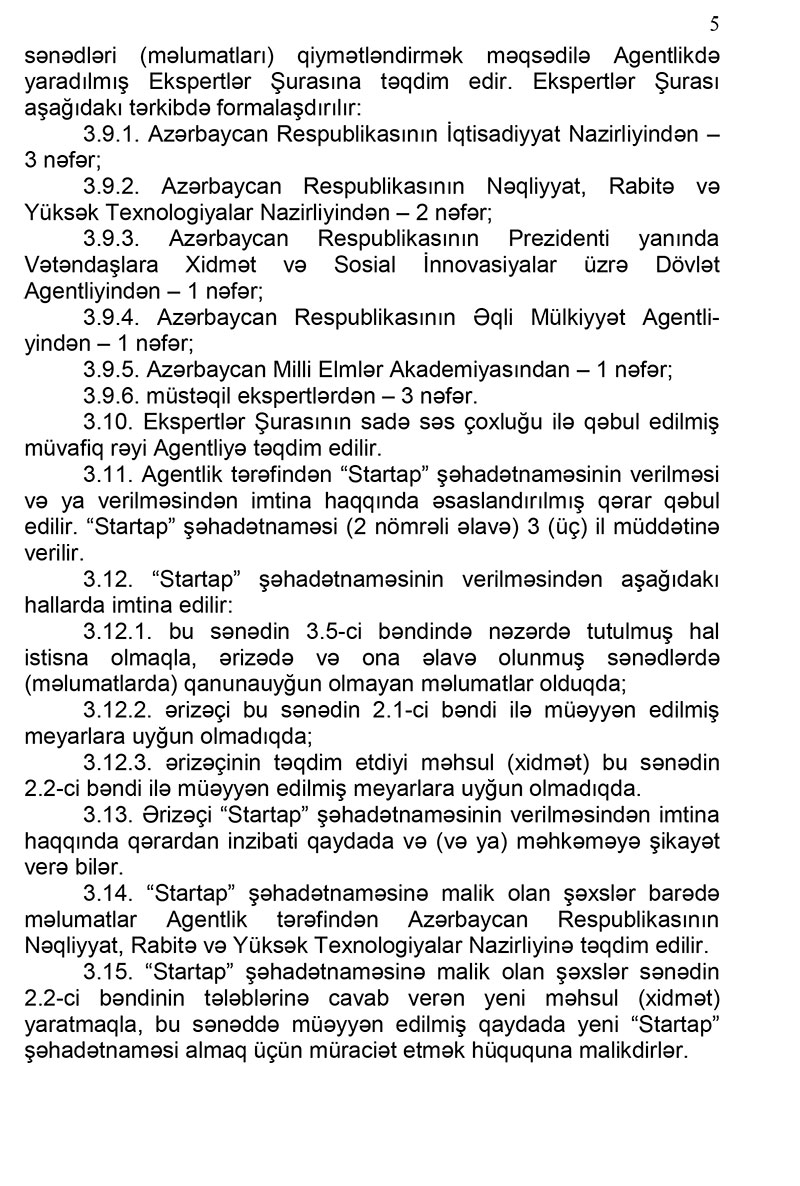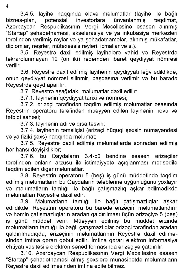 Marja xəbər verir ki, qərarlar ilə “İnnovativ layihələrin ictimaiyyət üçün açıq reyestrinin aparılması və “Startap” pasportunun verilməsi Qaydaları” və “Startapın müəyyən olunması meyarları təsdiq edilib.