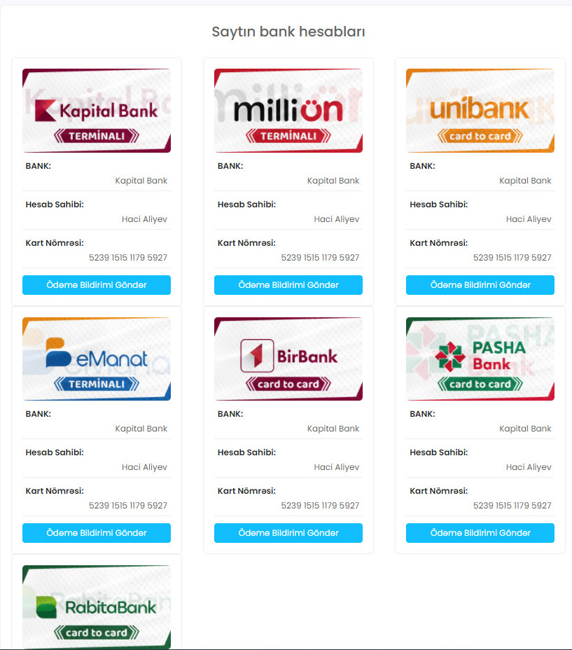 “GOAFAZ”ın saxtakar ola biləcəyi “Saytın bank hesabları” bölməsindən də məlum olur. Bu bölmədə “Bank hesabları” yazıb bir neçə bankın loqotipinin altında eyni kart nömrəsinin göstərilməsi dələduzluq əlaməti ola bilər.