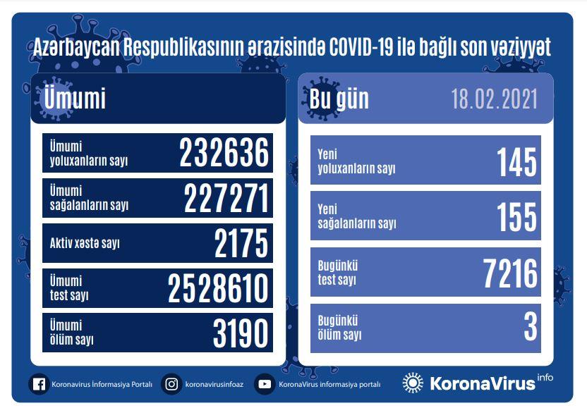 Qeyd edək ki, 17 Fevral 2021-ci il tarixində 154 yoluxma faktı qeydə alındığı açıqlanmışdı.