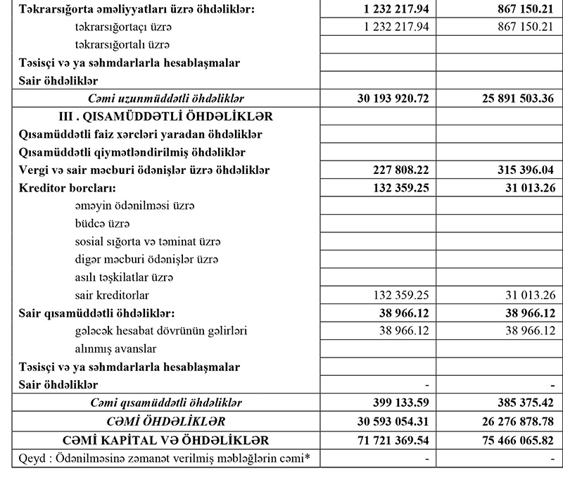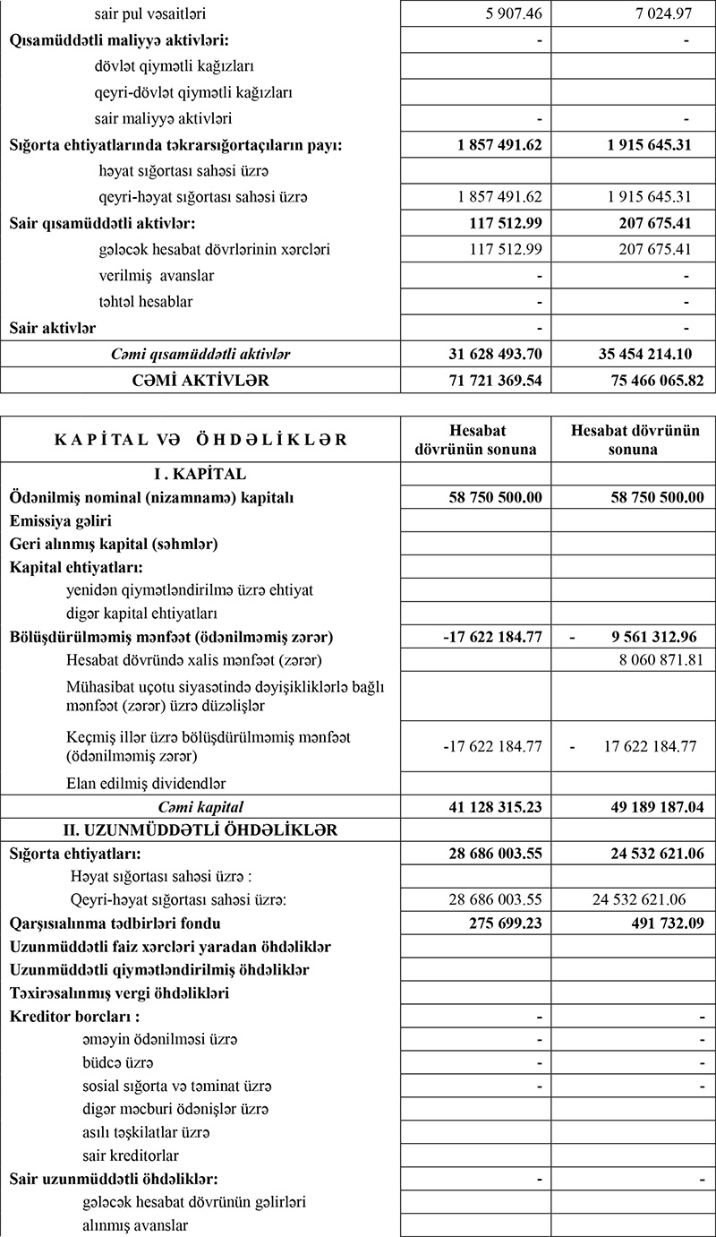 2019-cu ildə gəlirlərdən sığorta ehtiyatlarına böyük məbləğdə ayırma (18 milyon manatdan çox) şirkətin cəmi gəlirlərinin kəskin azalmasına səbəb olmuş və şirkətin zərərə düşməsilə nəticələnmişdi. 2020-ci ildə ehtiyatdan vəsaitin gəlirə əlavə edilməsi və toplanan sığorta haqlarının artması “Xalq Sığorta”nın yenidən mənfəətə çıxımasını təmin edib.