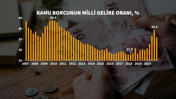 Türkiyənin dövlət borcunun milli gəlirə nisbəti 41% səviyyəsindədir. Avropa ölkələrində bu nisbət 90%-ə yaxındır.