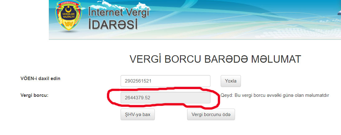 Marja Dövlət Vergi Xidmətinə istinadən xəbər verir ki, şirkətin 2 milyon 644 min 380 manat vergi borcu var. Xidmət vergi borclarının nə üçün yarandığını qeyd etmir.