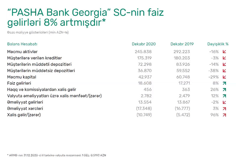Azərbaycanın “PAŞA Bank” ASC-nin törəməsi olan “PAŞA Bank Gürcüstan” 2020-ci ili 10 milyon 749 min manat xalis zərər ilə başa vurub. Bank 2019-cu ili 5 milyon 472 min manat xalis zərər ilə bağlamışdı.