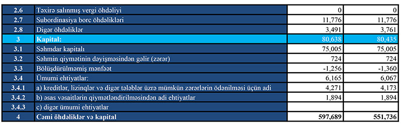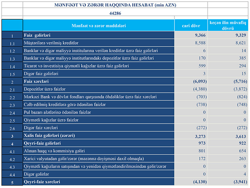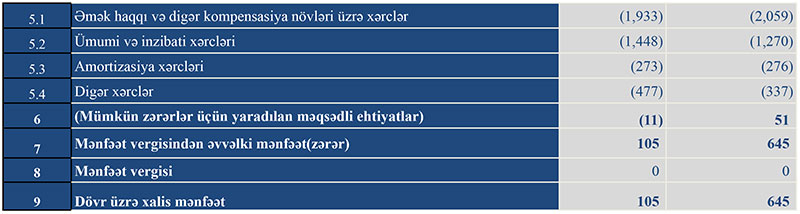 Müqayisə üçün qeyd edək ki, 2020-ci ilin ilk rübündə “Turan Bank”ın cəmi əməliyyat gəlirləri 10 milyon 251 min manat, cəmi əməliyyat xərcləri 9 milyon 657 min manat, əməliyyat mənfəəti 594 min manat təşkil etmişdi. Eyni zamanda mümkün zərərlər üçün yaradılan məqsədli ehtiyatlardan azad olmuş 51 min manat hesabına Bankın mənfəəti 645 min manata yüksəlmişdi.