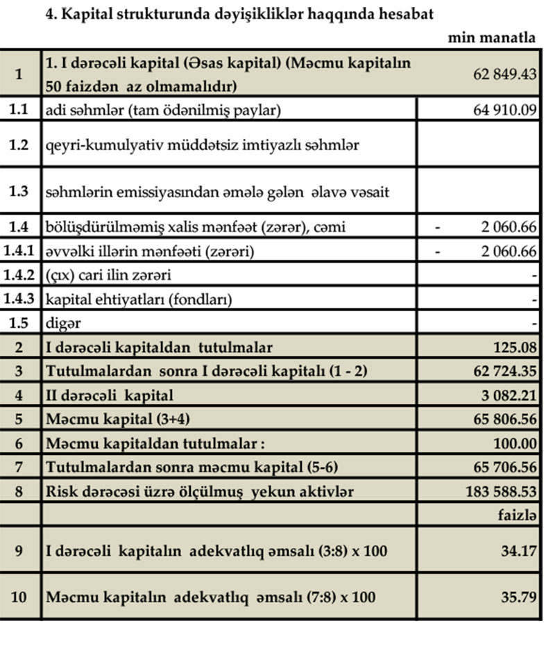 31 Mart 2021-ci il tarixində “Günay Bank” ASC 65 milyon 707 min manat məcmu kapitala malik olub.