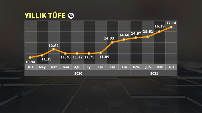Türkiyədə istehlak qiymətləri indeksi (inflyasiya) 2021 ili Aprel ayında Mart ayı ilə müqayisədə 1,68%, ötən ilin Dekabr ayı ilə müqayisədə 5,45%, ötən ilin Aprel ayı ilə müqayisədə isə 17,14% və on iki aylıq orta hesabla 13,70% artıb.