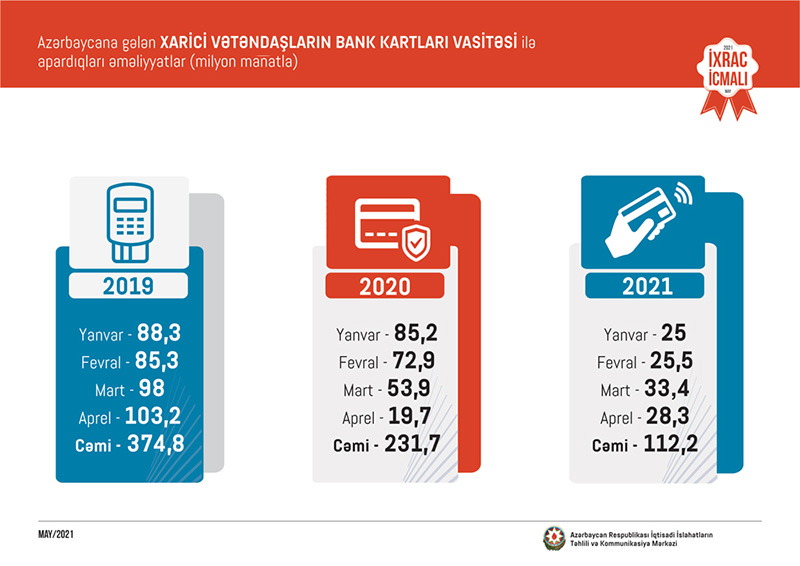 İqtisadi İslahatların Təhlili və Kommunikasiya Mərkəzinin “İxrac İcmalı”nın 2021-ci ilin may sayında bildirilir ki, 2021-ci ilin yanvar-aprel aylarında “Azərkosmos” ASC tərəfindən dünyanın 27 ölkəsinə 16,9 milyon ABŞ dolları dəyərində xidmət (peyk telekommunikasiya xidmətləri və optik peyk xidmətləri) ixrac edilib. “Azərkosmos” ASC-nin xidmət ixracından əldə etdiyi gəlir onun ümumi gəlirlərinin 91 faizini təşkil edib. 2021-ci ilin aprel ayında isə “Azərkosmos” ASC dünyanın 26 ölkəsinə 6,3 milyon ABŞ dolları dəyərində xidmət ixrac edib.
