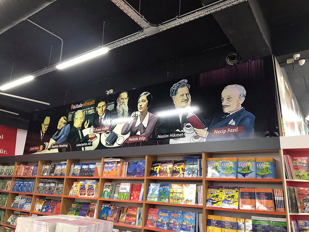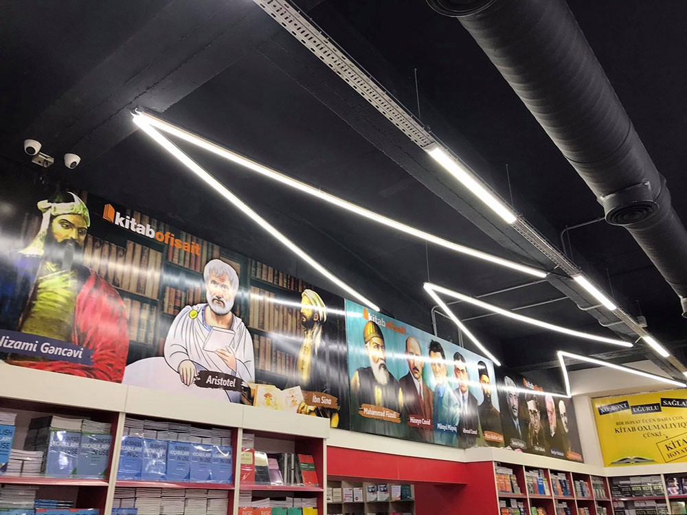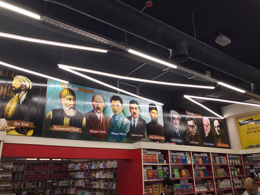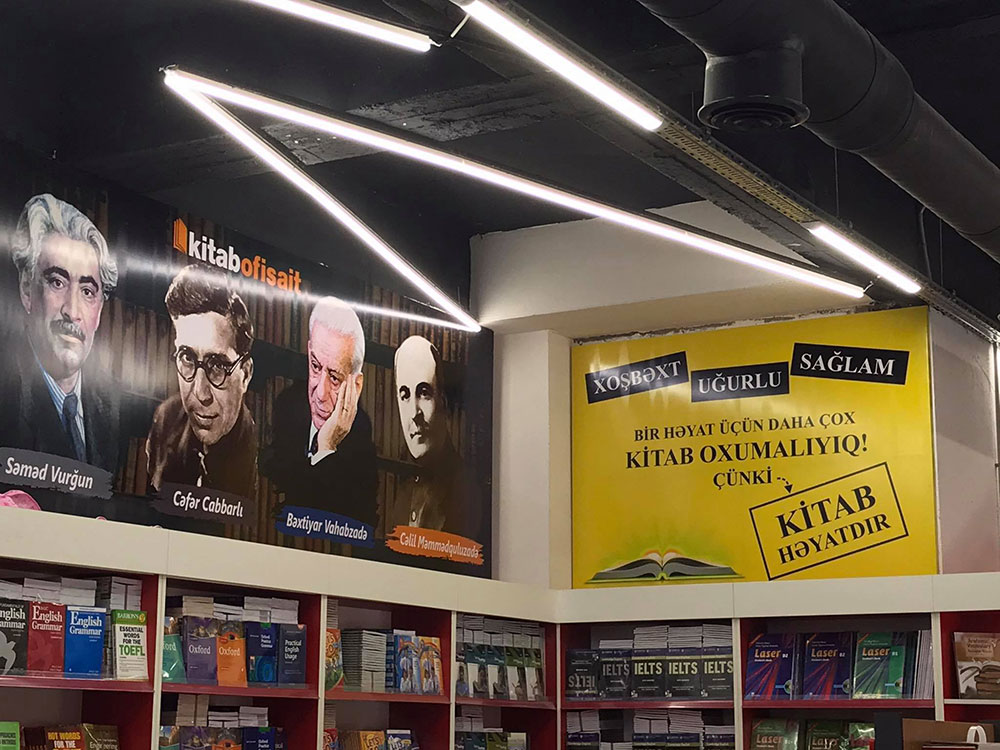 “Kitab Ofisait” mağazasının tərtibatı da diqqəti çəkir. Girişdə tavandan kitablar asılmışdır ki, bu da kitabın başımız üstündə yeri olduğuna işarədir. Mağazanın divarlarına dahi şəxsiyyətlərin rəsmləri və kitab ilə bağlı maraqlı sözlərin yazıldığı lövhələr yerləşdirilib.