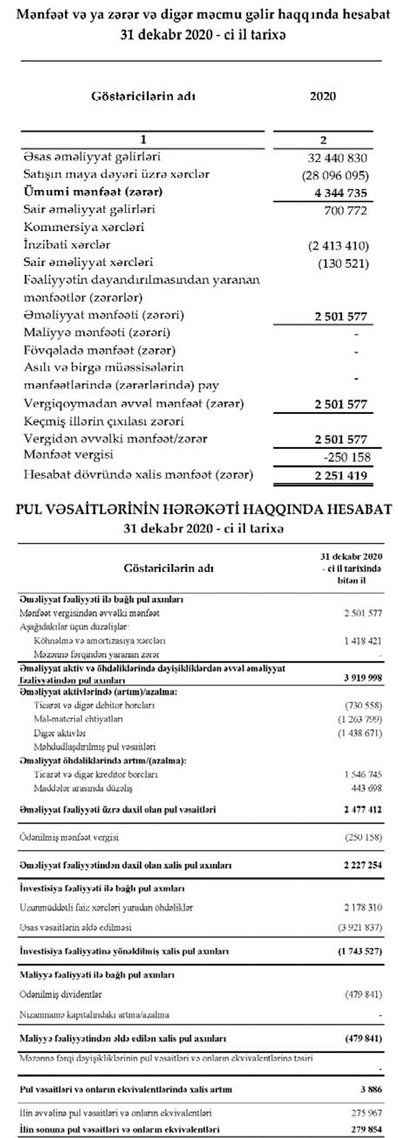 "Bakı İnşaat Sənaye" ASC 2020-ci ili 2 milyon 251 min manat xalis mənfəət ilə başa vurub.