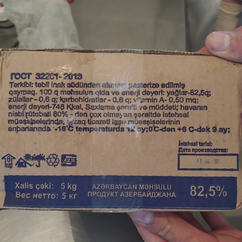 Qida təhlükəsizliyi sahəsində texniki normativ hüquqi aktların tələblərinə uyğunluğun müəyyən edilməsi məqsədilə məhsullardan götürülən nümunələr Azərbaycan Qida Təhlükəsizliyi İnstitutunun (AQTİ) müvafiq laboratoriyalarında müayinələrə cəlb edilib. İstehsalçı tərəfindən məhsulun 82,5% duzsuz kərə yağı olduğu bəyan edilsə də, müayinələr nəticəsində məhsulun bitki mənşəli yağ olduğu aşkar olunub.