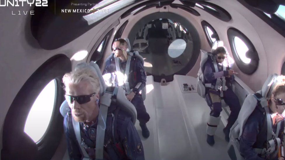 Kosmosa uçmaq üçün istifadə olunan, şaquli qalxıb-enən ənənəvi raketlərdən fərqli olaraq, xüsusi hazırlanmış təyyarə Branson və komandasının içində olduğu kiçik kosmik gəmini yer səthindən 15 km hündürlüyə qədər qaldırıb. Daha sonra təyyarədən ayrılan kosmik gəmi 1 dəqiqə içində səsdən 3 dəfə çox sürət götürərək, kosmosun sərhədinin başladığı nöqtəyə - 80 km hündürlüyə çatıb.