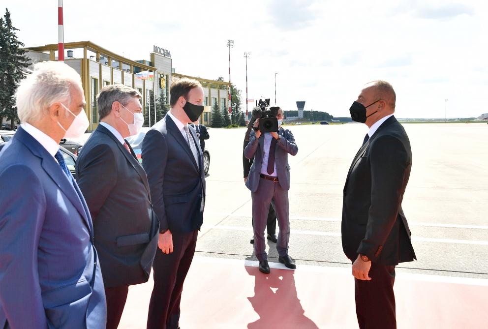 Moskvanın Vnukovo-2 beynəlxalq hava limanında Prezident İlham Əliyevi Rusiya xarici işlər nazirinin müavini Andrey Rudenko və digər rəsmi şəxslər qarşılayıblar.