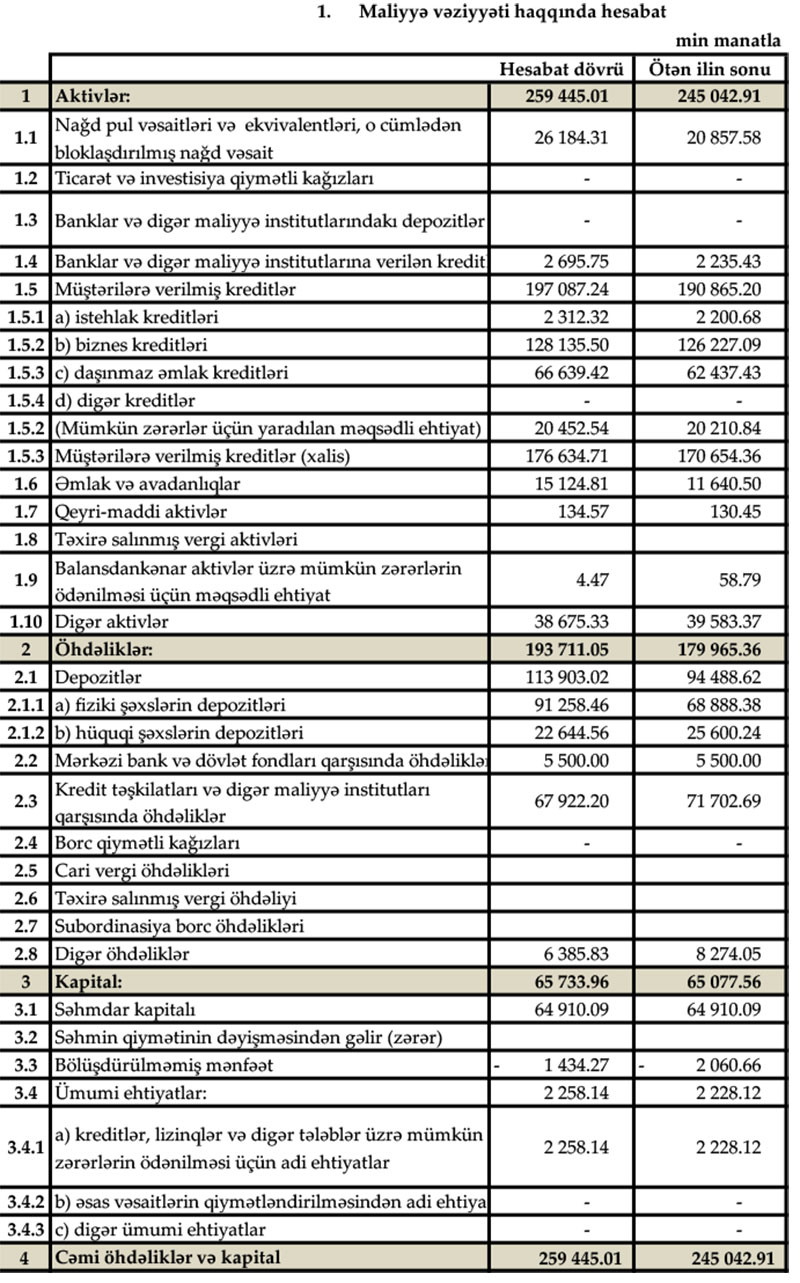 Belə ki, hesabat dövrü üzrə Bank 626,4 min manat mənfəət əldə edib, ilin əvvəlinə nisbətən ümimi aktivləri 14 milyon 402,1 min manat artıb.