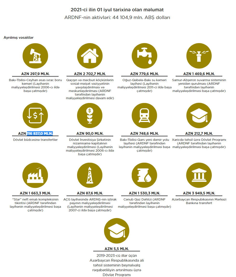 ARDNF indiyədək dövlət büdcəsinə 116 milyard 837 milyon dollar transfer edib.