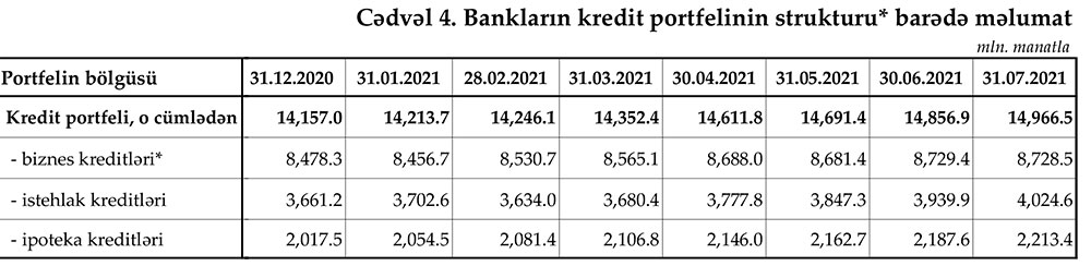 İyulda müştərilərə verilmiş cəmi kreditlər 0,7% artaraq 14 milyon 966.5 milyon manta çatıb.