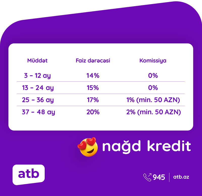 Ətraflı məlumatı https://atb.az/ saytından, Azər Türk Bankın sosial şəbəkələrdəki rəsmi korporativ səhifələrindən, WhatsApp (055) 7770 945, yaxud (012) 945 nömrəli Çağrı Mərkəzindən əldə edə bilərsiniz.