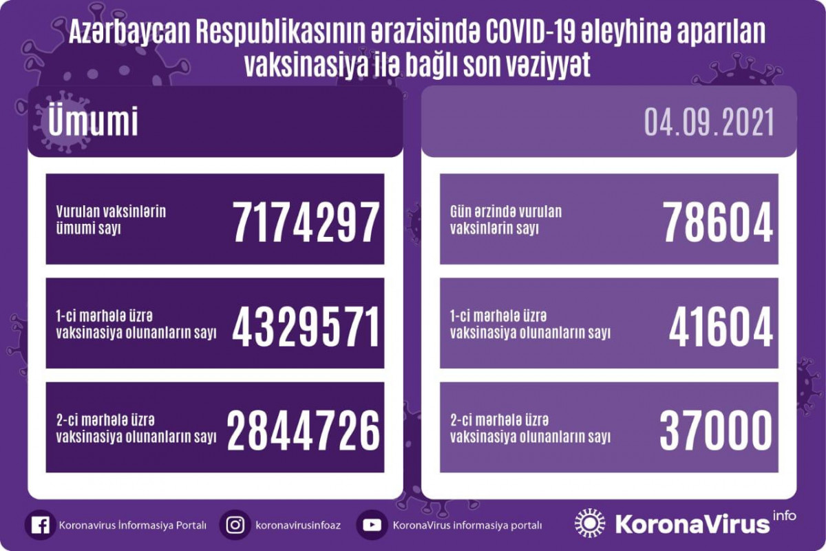 03 sentyabr 2021-ci il tarixində 3762 yoluxma faktı və 38 ölüm qeydə alındığı açıqlanmışdı.