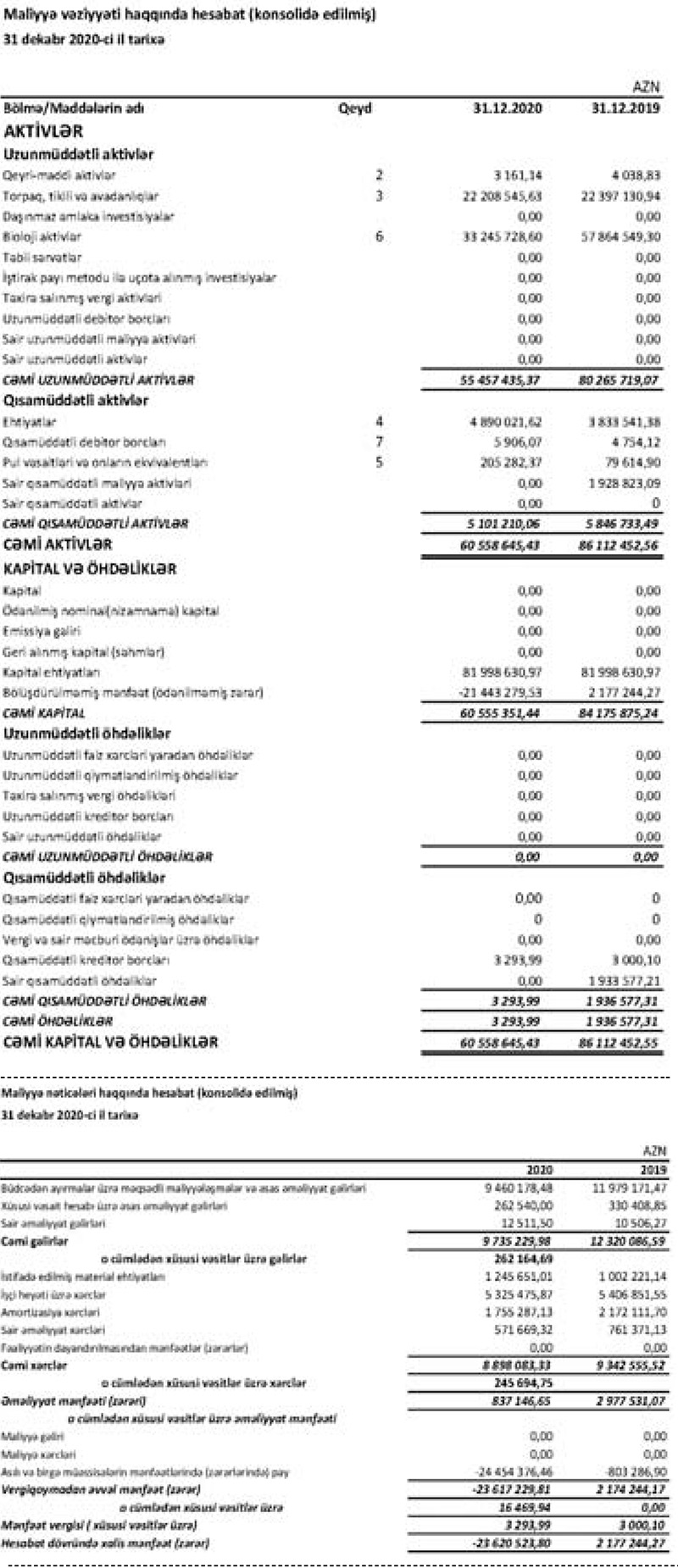 Gəlirlərin azalması ilə əlaqədar olaraq illik əməliyyat mənfəəti 2019-cu ildəki 2 milyon 977 min manatdan 2020-ci ildə 837 min manata geriləyib (3,6 dəfə azalma).