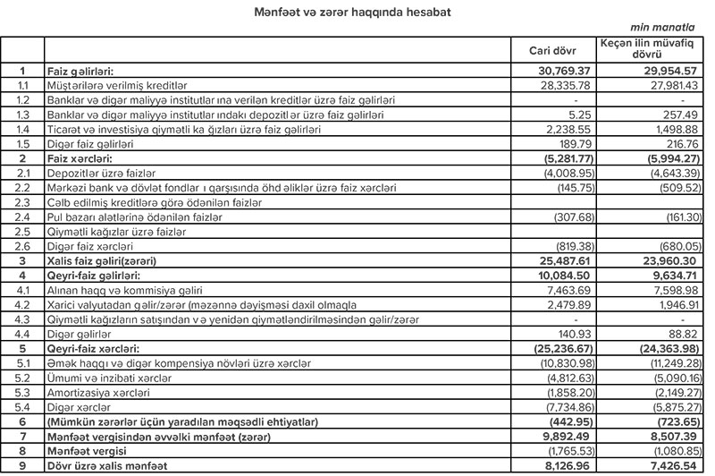 Daha bir bank maliyyə vəziyyətini açıqladı – 8 MİLYONDAN ÇOX XALİS QAZANCI VAR