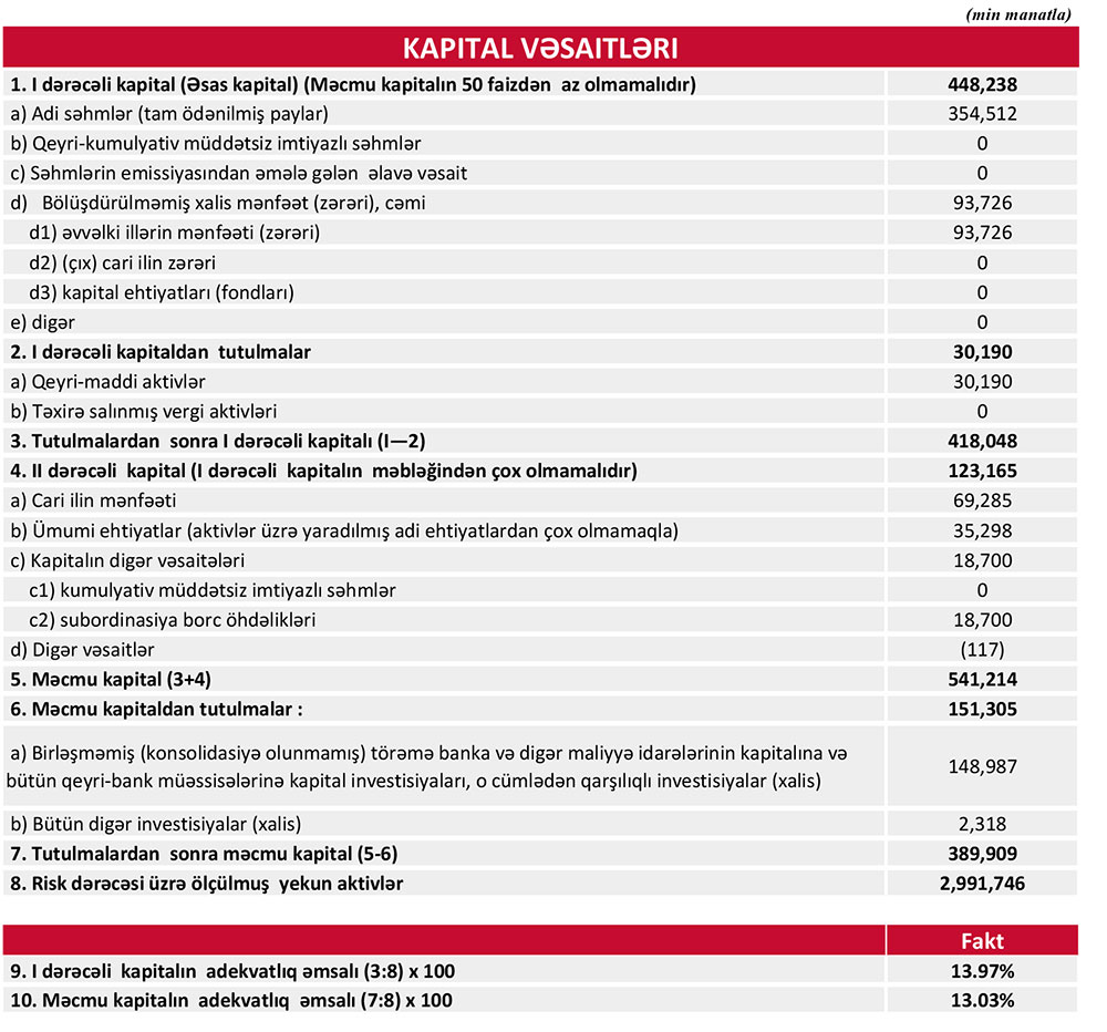 30 Sentyabr 2021-ci il tarixində “PAŞA Bank” 389 milyon 909 min manat məcmu kapitala malik olub.
