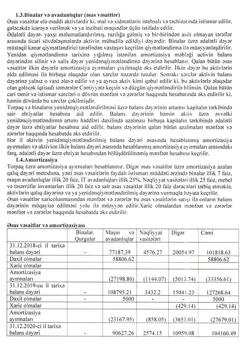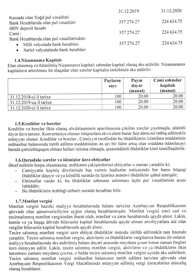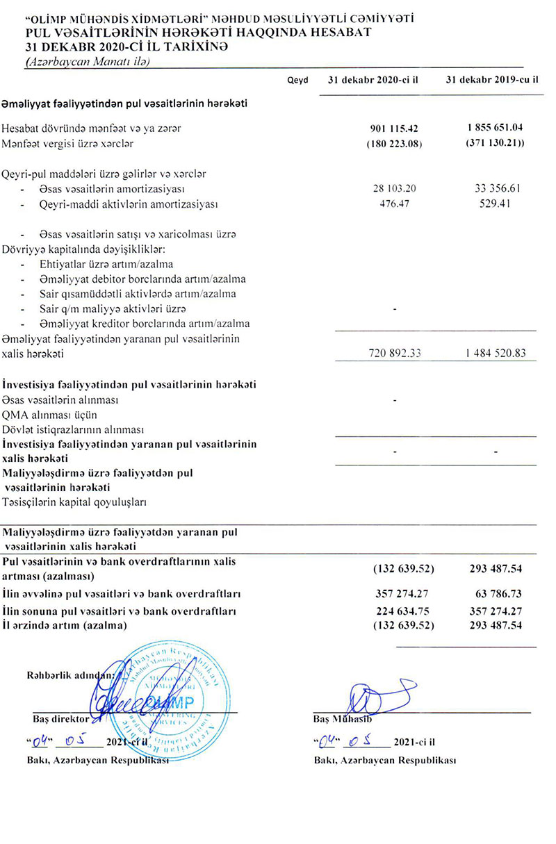 "Olimp Mühəndis Xidmətləri" MMC-nin 31 dekabr 2020-ci il tarixinə maliyyə hesabatları və müstəqil auditor rəyi.