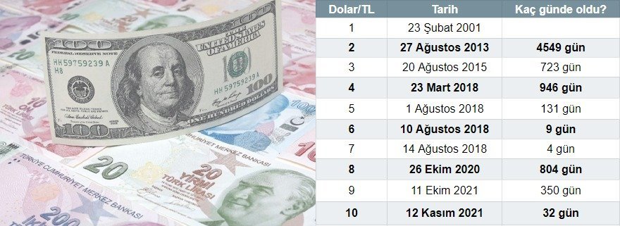 Dolların 1 TL-dən 2 TL-yə yüksəlməsi 12 il davam edərkən, 4 TL-dən 10 TL-yə yüksəlməsi 3 il ərzində baş verib.