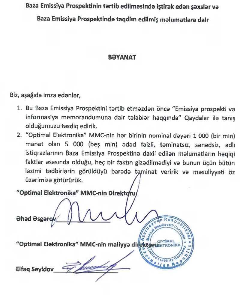 "Optimal Elektronika" 2,5 milyon manat cəlb edir - İSTİQRAZ BURAXIR, ŞƏRTLƏR