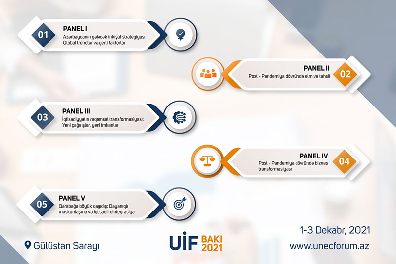 Forum çərçivəsində 3 gün ərzində 5 panel üzrə müzakirələr gedəcək. Panellər aşağıdakı kimidir: