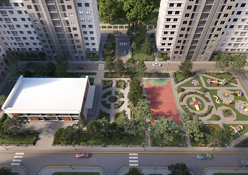 Dörd hektar ərazini əhatə edən kompleksin cəmi 1 hektarı yaşayış binaları, ictimai iaşə və digər yardımçı tikililərin inşası üçün nəzərdə tutulub. Qalan 3 hektarlıq sahədə sakinlərin istirahəti üçün geniş infrastruktur yaradılacaq. Aktiv istirahət üçün düşünülmüş açıq idman meydançası, geniş yaşıllıq, uşaqlar üçün oyun meydançası, kompleksin perimetri boyunca qaçış və velosiped zolağı, 1200 avtomobillik yeraltı və yerüstü avtodayanacaq sahəsi, SPA və böyük üzgüçülük hovuzu, kinoteatr mərkəzi və digər üstünlüklər rahatlığınızı təmin edəcək.