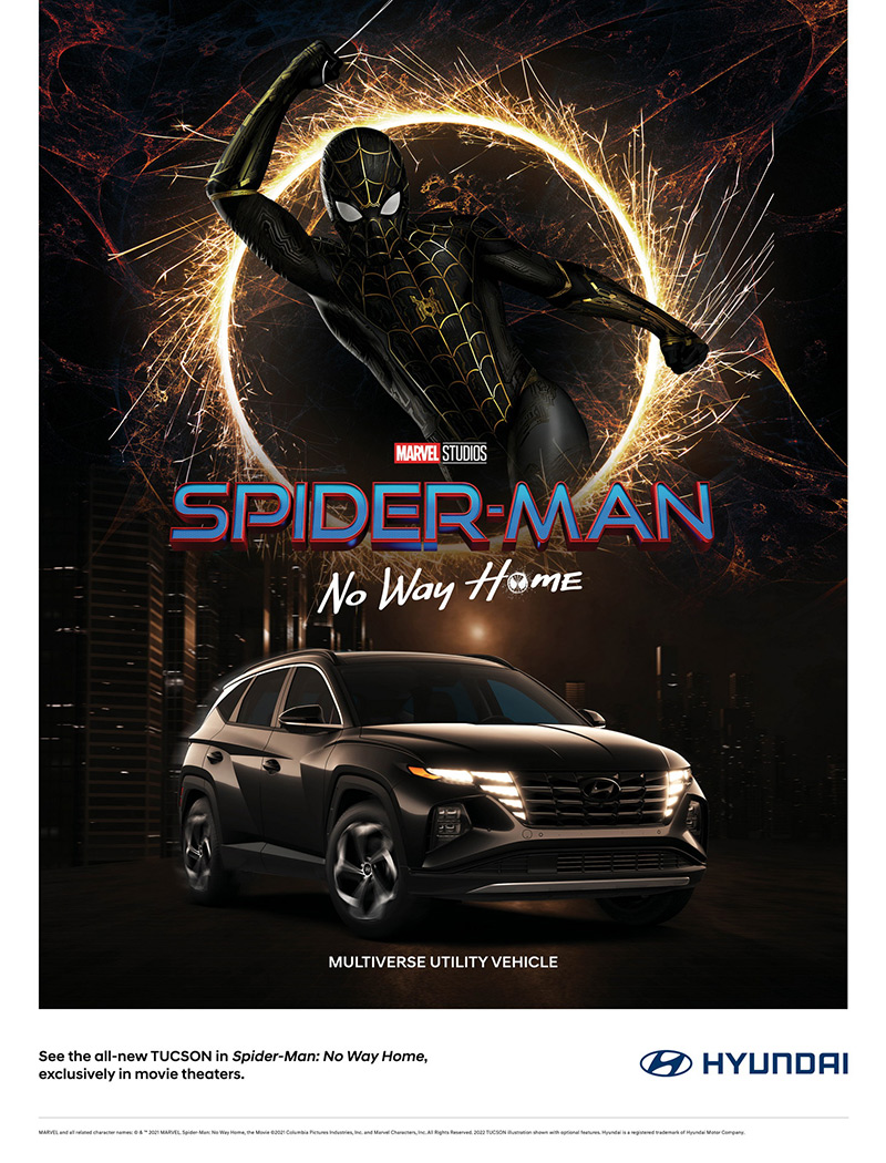 “Hyundai Motor Company” və “Sony Pictures Entertainment” arasında strateji tərəfdaşlığın nəticəsi olaraq tamamilə elektriklə işləyən IONIQ 5 və tam yeni TUCSON-un “Hörümçək-adam: Evə yol yoxdur” filmində yerləşdirilməsi və əsas personajların canlandırdığı hekayə xəttinin əsas məqamlarına daxil edilməsi bütün dünyada milyonlarla tamaşaçının zehnində Hyundai modelləri ilə bağlı müsbət təsürat yaradacağı və bu əməkdaşlıqdan böyük marketinq effektivliyinin əldə edilməsi gözlənilir.