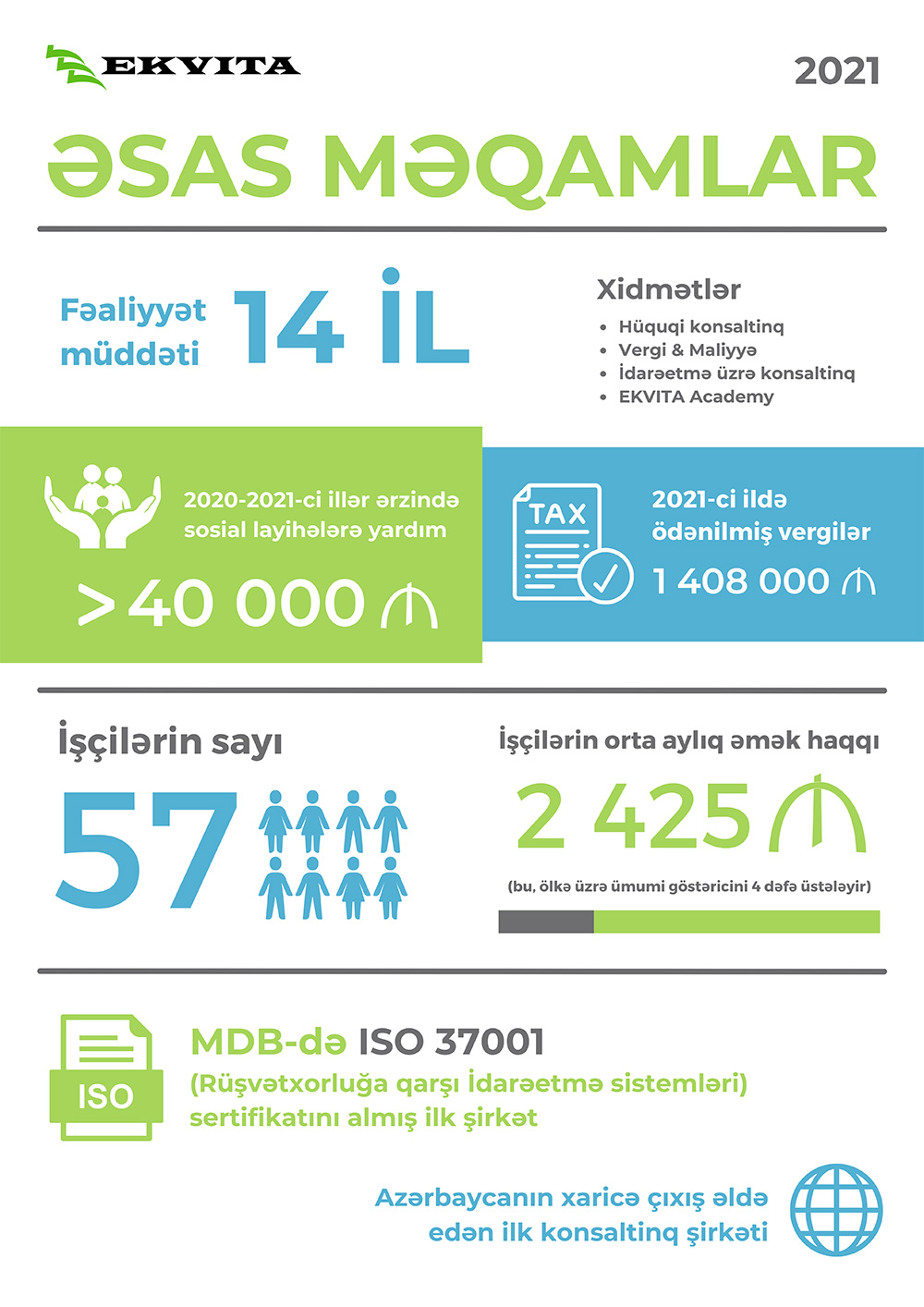 “Hər il EKVİTA-nın korrupsiya riskləri məşhur Lloyd’s şirkəti tərəfindən təftiş edilir. Son dəfə bu audit 2021-ci ilin may ayında aparılmışdır və uğurla bitirilmişdir. Bu cür auditləri könüllü təşkil edən Azərbaycanın yeganə konsaltinq şirkəti EKVİTA-dır.”