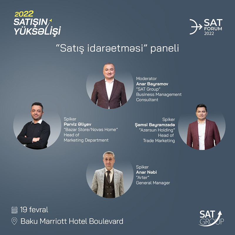Fevralın 19-da sahibkarlar, CEOlar, satış rəhbərləri, menecerlər “2022 - Satışın Yüksəlişi” mesajı ilə Baku Marriott Hotel Boulevard-da bir araya gələcək. Satış üzrə ilin ilk vacib forumu 3 paneldə aparılacaq: