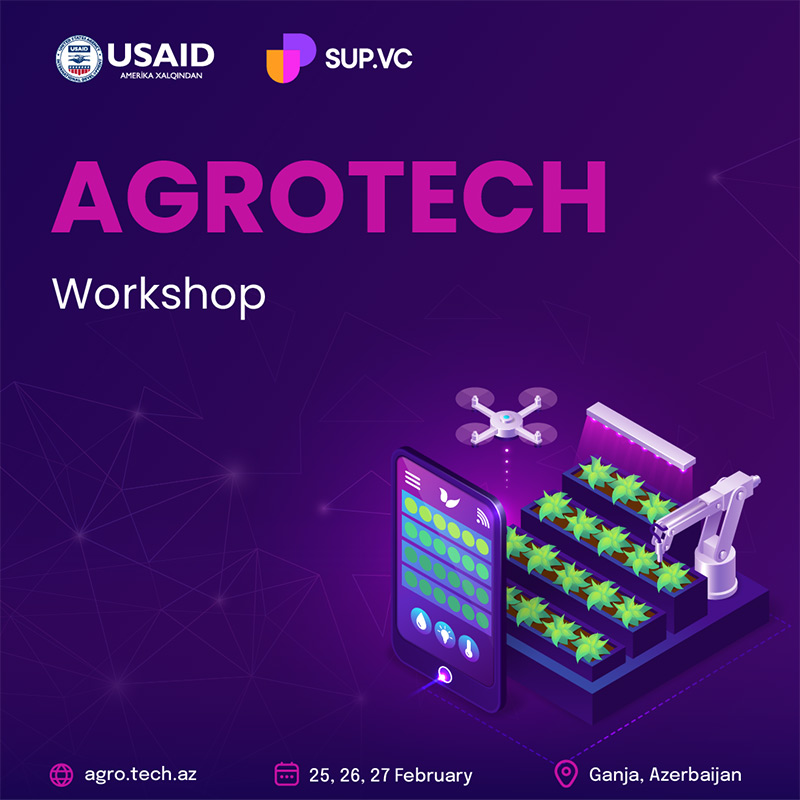 ABŞ Beynəlxalq İnkişaf Agentliyinin (USAID) maliyyə dəstəyi ilə Gəncədə SUP VC-nin təşkilatçılığı ilə fevralın 25-dən 27-dək AgroTech Hackathon və fevralın 25-də “AgroTech Workshop” təşkil ediləcəkdir. Kənd təsərrüfatı sahəsində ən yaxşı həll yolunu təqdim edən komanda qalib olacaq və iştirakçılar kənd təsərrüfatı sektorunun inkişafı üçün tətbiq edilən ən son texnologiyalarla tanış olacaqlar.(®) “AgroTech Hackathon” kənd təsərrüfatı sektorundakı problemlər üçün innovativ həllərin tətbiq edilməsi, kənd təsərrüfatında texnologiyalar və innovasiyaların inteqrasiya edilməsi üçün nəzərdə tutulmuşdur. İştirakçılar bu əsas anlayışların kənd təsərrüfatında necə istifadə edildiyini öyrənməklə yanaşı, həm də təşkilata töhfə vermək üçün təcrübə və bacarıqlara yiyələnəcəklər