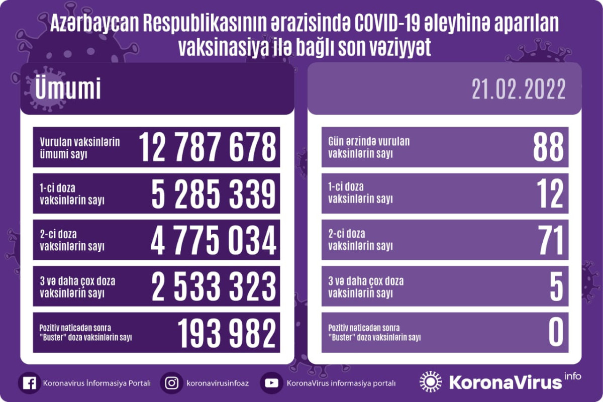 Azərbaycanda son bir gündə koronavirus (COVID-19) əleyhinə 88 vaksin vurulub.