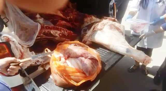 Xidmətdən "Marja"ya daxil olmuş məlumata görə, 09 iyun 2017-ci il tarixində alınmış məlumat əsasında Dövlət Baytarlıq Nəzarəti Xidmətinin Xaçmaz Rayon Baytarlıq İdarəsinin və Daxili İşlər Nazirliyinin Baş İctimai Təhlükəsizlik İdarəsinin Karantin tədbirlərini təmin edən əlahiddə polis taboru əməkdaşlarının iştirakı ilə qida təhlükəsizliyinin qorunması, insan həyat və sağlamlığına təhlükə törədən, mənşəyi məlum olmayan heyvandarlıq məhsullarının satışının qarşısını almaq məqsədi ilə Xaçmaz rayonu, Xudat şəhəri, H. Əliyev küçəsi 29B, mənzil 16-da yaşayan Məmmədyarov Eynulla Balaşərif oğluna məxsus “PEKAP” markalı 10-PE-327 dövlət nömrə nişanlı avtomobilinə Xaçmaz rayonu ərazisində baxış keçirilmişdir. Baxış zamanı avtomobilin yük yerində qeyri-qanuni, antisanitar şəraitdə, üst-üstə yığılmış vəziyyətdə daşınan, mənşəyinə və sağlamlığına dair heç bir sənədi olmayan, şaqqalara bölünmüş 500 kq çəkisində olan heyvan əti, 2 ədəd kəsilmiş malın baş-ayağı və daxili orqanları aşkar olunmuşdur.