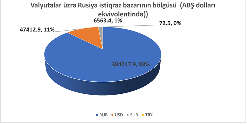 Qeyd edim ki, yuxarıdakı məlumatlar istiqraz bazarlarının böyük bir hissəsinin Rusiya dövlətinin payına düşdüyünü göstərir. Bunu qeyd etməkdə məqsəd ondan ibarətdir ki, hazırda Rusiyaya qarşı olan sanksiyalar müəyyən mənada digər ölkələr üçün də fəsadlar doğura bilər. Aşağıda Rusiyanın istiqraz bazarı təhlil olunub.