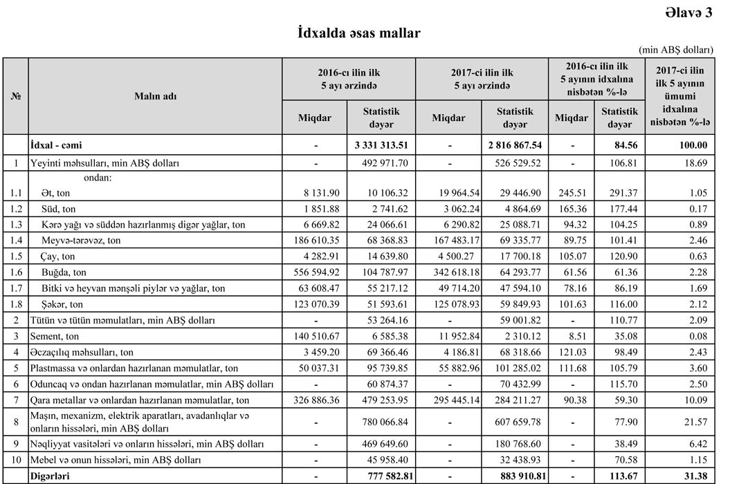 Mayda Azərbaycanın ixracı 902 milyon 694.25 min dollar, idxalı isə 651 milyon 826.04 min dollar, saldo 250 milyon 868.21 min dollar təşkil edib. Mayda Aprel ayı ilə müqayisədə Azərbaycanın ixracı 38 milyon 884 min dollar azalıb, idxalı isə 9 milyon 521 min dollar artıb.