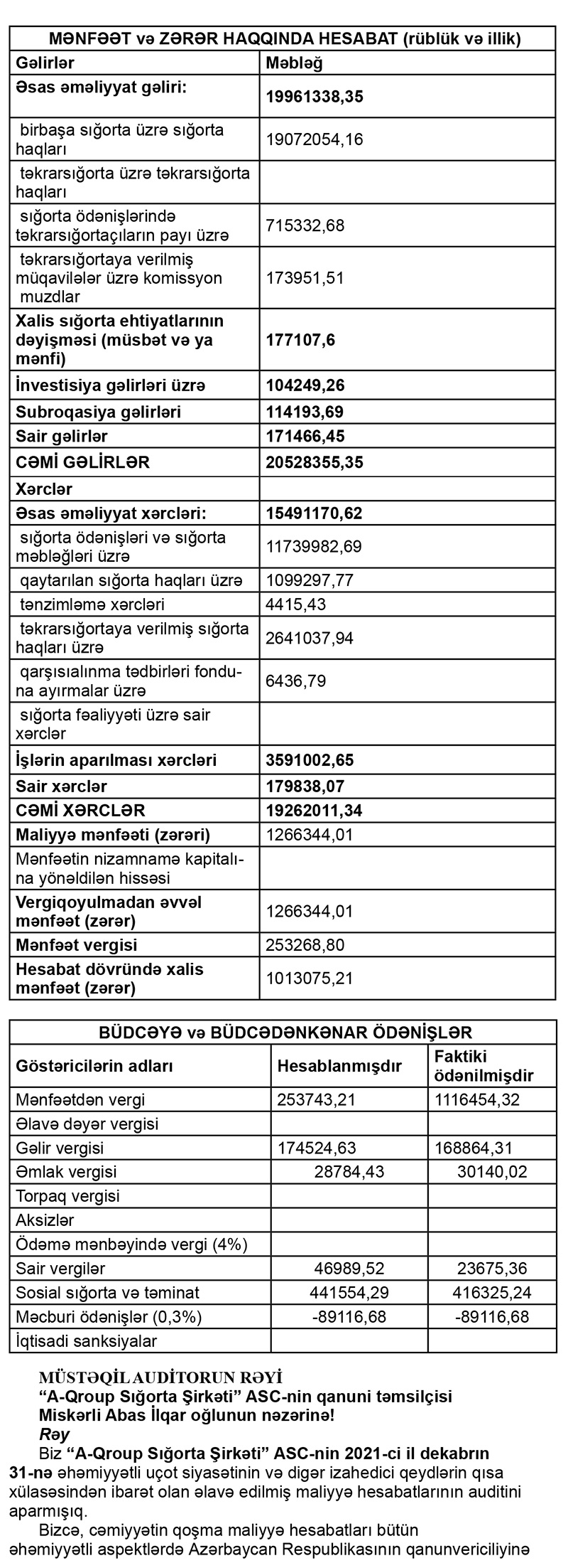 “A-Qroup“ Sığorta Şirkəti ASC-nin 2021-ci ildə xalis mənfəəti 2020-ci illə müqayisədə 2,8 dəfə azalaraq 1 milyon 13 min manat təşkil edib. Şirkət 2020-ci ili 2 milyon 813 min manat xalis mənfəət ilə bağlamışdı.