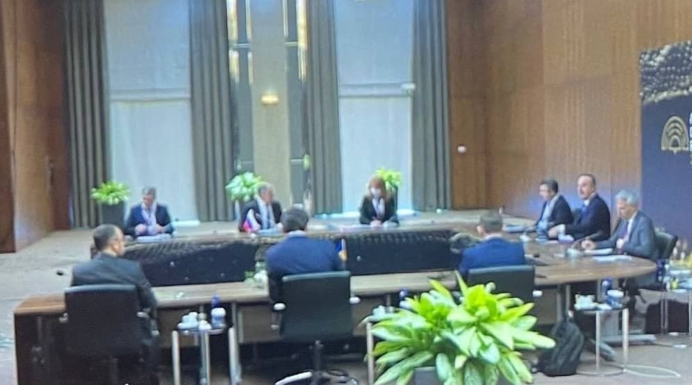 Lavrov və Kuleba arasında keçirilən görüşün əvvəlindən kadrlar.